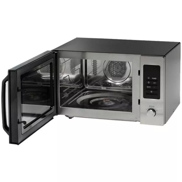 فن یا کانوکشن : این دستگاه مایکروویو به فن یا کانوکشن مجهز شده است. وجود فن باعث می شود که میزان حرارت و گرما به صورت کاملاً مساوی در تمام قسمت های دستگاه پخش شود و این موضوع سبب می شود که تمام سطح غذای مورد نظر شما برشته شود و از سوختن یا پخته نشدن قسمت هایی از غذا جلوگیری خواهد شد